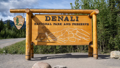 Denali National Park and Preserve encompasses 6 million acres of Alaska’s interior wilderness. Its centerpiece is 20,310-ft.-high Denali (fka Mount McKinley), North America’s tallest peak. With terrain of tundra, spruce forest and glaciers, the park is home to wildlife including grizzly bears, wolves, moose, caribou and Dall sheep. Popular activities in summer include biking, backpacking, hiking and mountaineering. ― Google